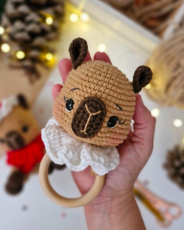 Se encuentra tejido con hilo de algodón rústico 8/6 y aguja de 3 mm. El tamaño del amigurumi terminado es de 15 centímetros.